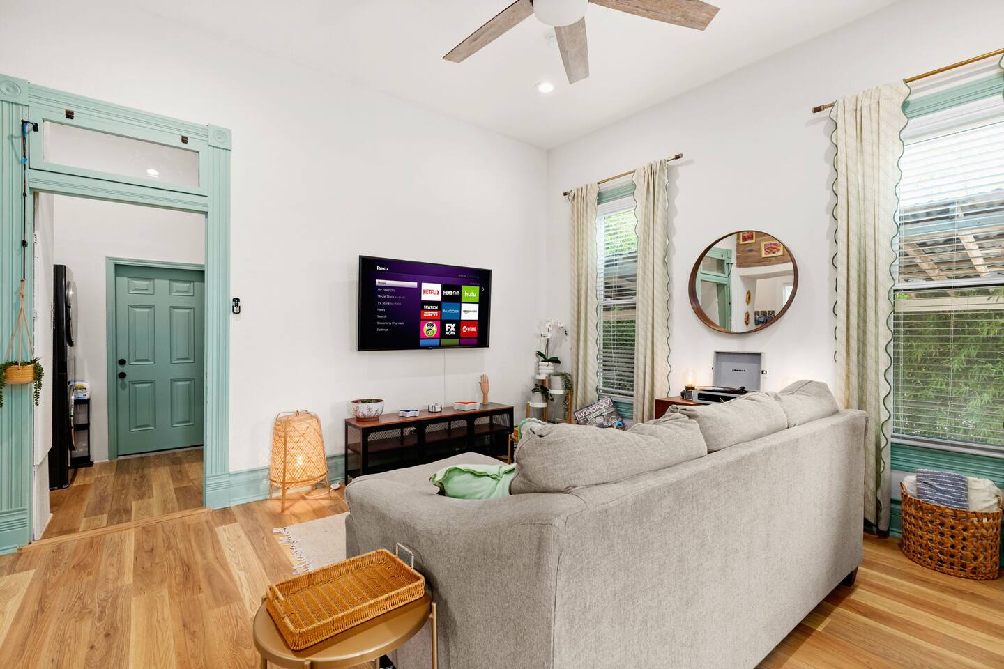 Nestled in the heart of Southtown, our charming residence offers an exceptional stay right in the pulse of San Antonio’s vibrant culture and nightlife. Southtown is renowned for its artsy vibe and abundant dining options, making it a hotspot for visitors seeking a taste of local life. From here, you’re just steps away from top attractions and eclectic neighborhoods. Enjoy the ease of exploring San Antonio with popular destinations within quick driving distance. Below are the travel times to major points of interest: •The River Walk - 5 min •The Alamo - 7 min •Henry B. Gonzalez Convention Center - 8 min •Alamodome - 10 min •Pearl Brewery District - 10 min •San Antonio Museum of Art - 12 min •Frost Bank Center - 12 min •King William District - 3 min (or a pleasant 15-minute walk) •Mission Trail - 15 min •St Mary’s Strip - 15 min •Fort Sam Houston - 20 min •Witte Museum - 20 min •Brackenridge Park - 20 min •Botanical Gardens - 22 min •Lackland Air Force Base - 25 min •Fiesta Texas - 30 min •Sea World - 35 min Our Southtown home is perfectly positioned for you to enjoy all the conveniences of urban living along with the charm and comfort of a local neighborhood. Whether you’re here for leisure, business, or a bit of both, our property provides a prime base to experience all that San Antonio has to offer.