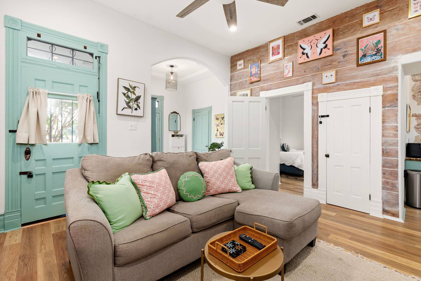 Bienvenido a Southtown, una joya en San Antonio que ofrece la combinación perfecta de la comodidad del centro y el ambiente acogedor de un vecindario. Nuestra zona está a solo minutos del famoso Riverwalk, lo que garantiza que nunca estarás lejos del corazón de las atracciones de San Antonio, pero lo suficientemente apartado para disfrutar de una estancia tranquila. A las familias les encanta este lugar, gracias a nuestras calles seguras y tranquilas y los parques cercanos. Ya sea que viajes con niños pequeños o simplemente aprecies el sentido de comunidad, encontrarás Southtown acogedor y cálido. ¡Los amantes de las compras y la gastronomía están de suerte! Nuestro vecindario cuenta con una mezcla ecléctica de tiendas locales donde puedes encontrar regalos y productos únicos. Hay una tienda excelente que tienes que visitar a una cuadra. Para comer, tienes muchas opciones con una variedad de restaurantes para todos los gustos, desde cafeterías acogedoras para tu café matutino hasta bares animados para relajarte por la noche. Estamos a poca distancia a pie de algunos de los restaurantes, bares y tiendas más modernos de la ciudad. Elegir hospedarte en Southtown significa optar por el encanto y el carácter del vecindario más atractivo del centro de San Antonio, sin el bullicio típico del centro. Es el lugar perfecto para quienes quieren explorar la ciudad de día y retirarse a la comodidad y tranquilidad por la noche. Reserva tu estancia con nosotros en Southtown y vive lo mejor de ambos mundos: la emoción de San Antonio al alcance y la tranquilidad de un vecindario que se siente como en casa. ¡Estamos deseando darte la bienvenida!