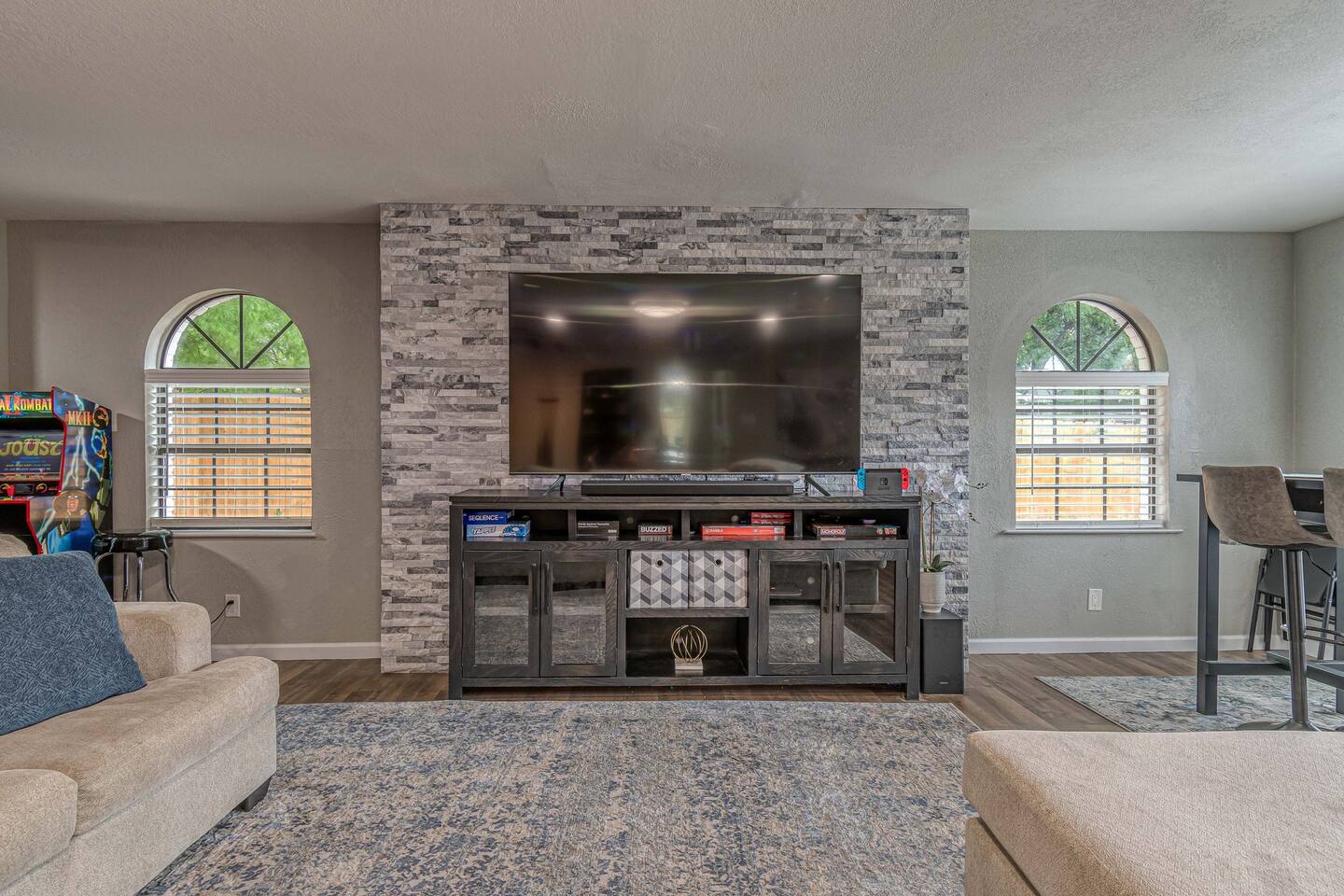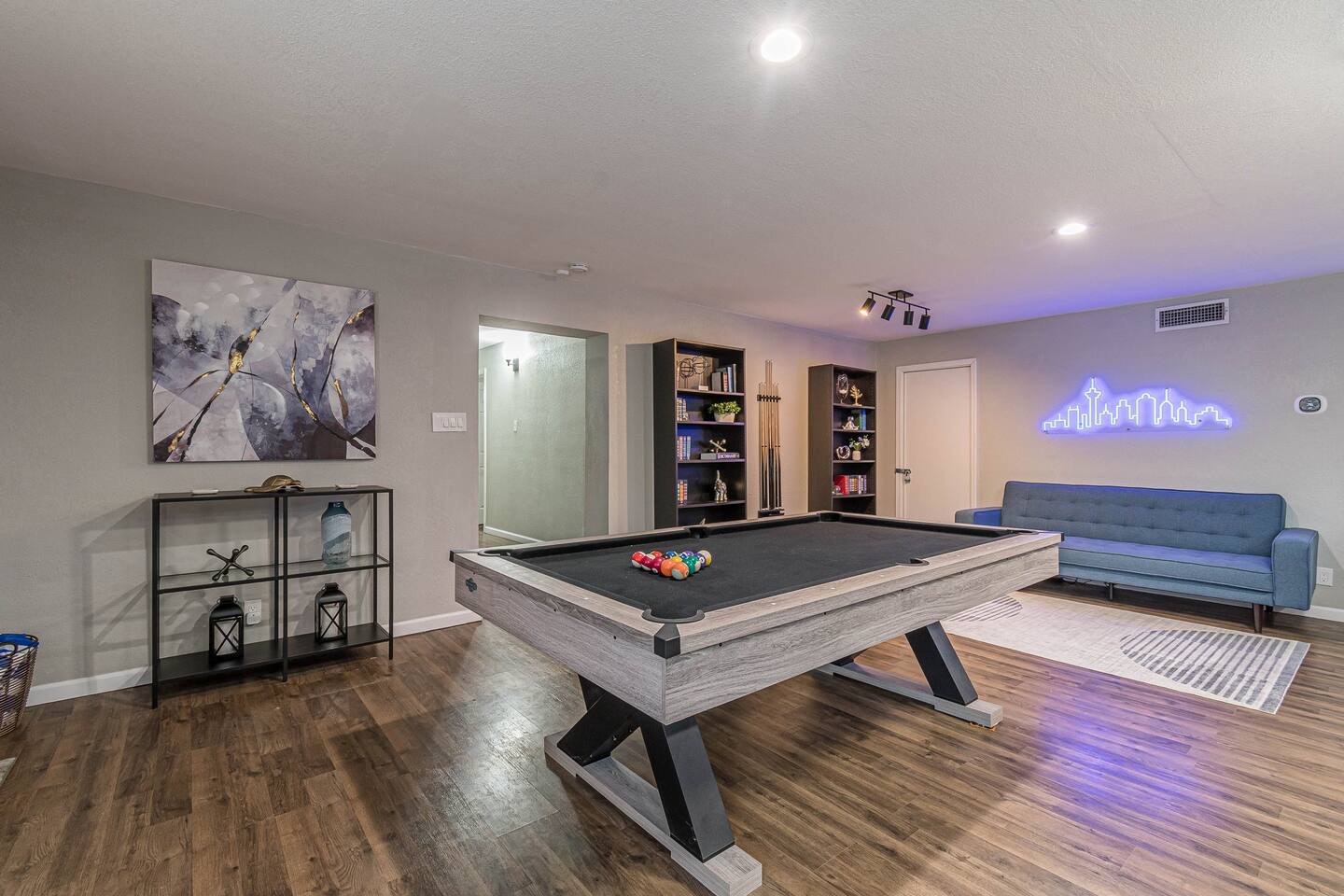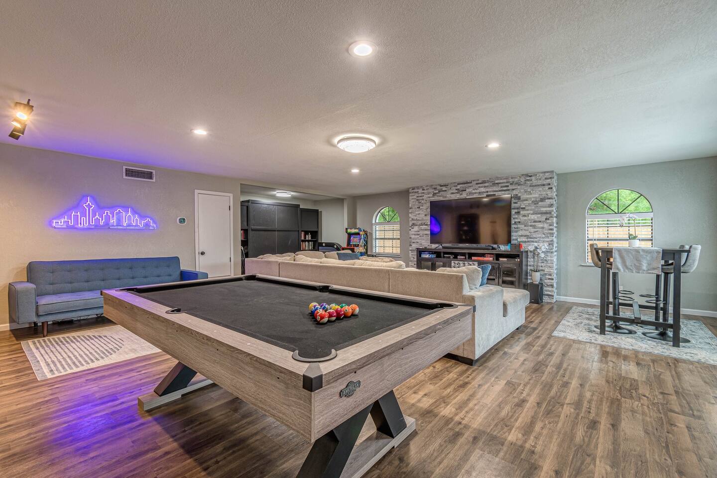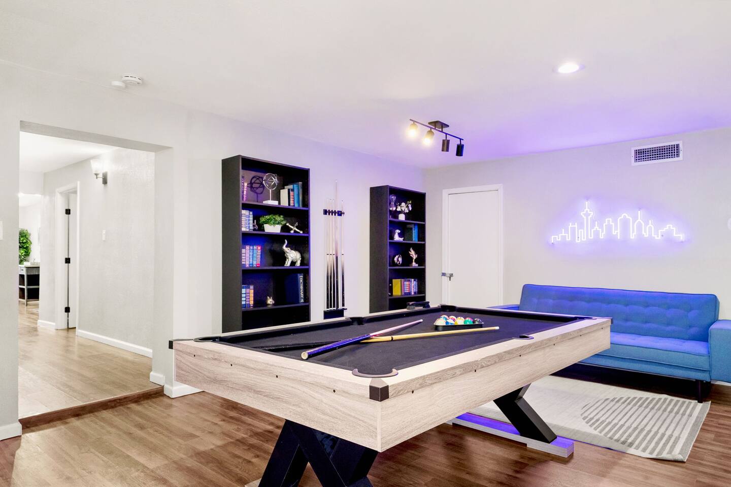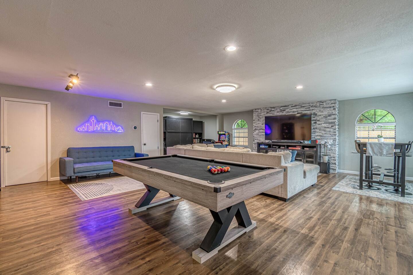 Toda la propiedad, tanto por dentro como por fuera, ha sido completamente remodelada. Ubicada en el centro de la ciudad, en el histórico vecindario de Shearview Hills. La casa cuenta con 4 habitaciones y 2 baños. La recámara principal tiene una chimenea decorativa. Esta casa tiene una sala de estar MUY grande con múltiples ventajas y comodidades. Hay un total de 3 camas queen, 1 cama matrimonial y 2 sofás cama cómodos, además de un sofá seccional en forma de L muy confortable. Disponemos de colchones inflables extra si se necesitan más camas. Es el lugar perfecto para grupos que buscan lujo y comodidad. Crea los mejores recuerdos aquí con tu familia y amigos en nuestra espaciosa casa. (RESUMEN DE CARACTERÍSTICAS) -Mesa de billar -Mesa de póker para 10 personas con fichas/cartas -Smart TVs en cada habitación (Netflix, Prime, Paramount+ con Showtime, Hulu, Disney+) -2 máquinas arcade retro (hasta 6 jugadores pueden jugar al mismo tiempo) -Cocina y asador totalmente equipados -Variedad de juegos de mesa -Múltiples lugares muy estéticos para fotos ¡Hay mucho que decir sobre esta casa! Administramos muchas casas en San Antonio y ¡esta es sin duda una de nuestras favoritas! Si yo tuviera que elegir una casa en San Antonio, esta sería mi elección. El propietario no escatimó en nada al crear este Airbnb y, en mi opinión, ¡la ubicación es la mejor de San Antonio! Esta es una casa completamente remodelada, y cada detalle fue cuidadosamente pensado por el propietario, quien la diseñó específicamente para alquileres a corto plazo, con cada detalle en mente y muy enfocada en familias. ¡Incluso hay un patio delantero cercado! La casa cuenta con 4 habitaciones con colchones de gel memory foam muy cómodos. Cocina: La cocina cuenta con electrodomésticos de alta gama, completamente equipada con utensilios de cocina premium, olla instantánea, estación de café y estufa de gas. También tiene una gran mesa de comedor con área de bar completa, el lugar perfecto para pasar la tarde con amigos y familia. Como todos saben, el grupo siempre se reúne en la cocina. Entretenimiento - En la casa principal encontrarás: Smart TVs por todas partes. Hay televisores HD con soportes giratorios fáciles de mover en cada habitación. La sala cuenta con una TV HD 4K de 75 pulgadas con Netflix, Amazon Prime y Disney Plus en cada TV. ¡El sistema de sonido es increíble! También ofrecemos un Nintendo Switch con controles. Además, tenemos varias máquinas arcade retro. ¡Puedes mostrarles a tus hijos a qué jugabas antes! El patio trasero - ¡Este es nuestro lugar favorito! Ofrecemos un asador totalmente equipado y una increíble fogata de gas con muchos asientos para esas noches frescas haciendo S'mores. ¡Ubicación, ubicación, ubicación! Esta casa está ubicada prácticamente en el centro de San Antonio. El aeropuerto está a solo cuatro minutos y el centro a literalmente diez minutos. Muy fácil acceso a los principales corredores viales: US Highway 281 y la Interestatal Loop 410. Riverwalk - 7 millas / 10 minutos Álamo - 7 millas / 10 minutos The Historic Pearl - 5.5 millas / 7 minutos - ¡Muchos restaurantes, bares y tiendas excelentes! North Star Mall - 0.8 millas / 3 minutos Zoológico de San Antonio - 4.4 millas / 8 minutos Centro de Convenciones - 7.7 millas / 12 minutos Alamodome - 7.8 millas / 10 minutos Hay demasiadas opciones de restaurantes para enumerar, pero literalmente tienes muchísimas opciones a minutos de esta ubicación. También hay un Walmart y una tienda HEB a solo minutos. Esta es una "casa sin fiestas" y aplicamos esta política estrictamente. Queremos que la pases genial, pero si buscas una casa para hacer fiestas e invitar a personas no autorizadas, esta casa no es para ti. Los huéspedes tendrán acceso a toda la casa. Otras cosas a tener en cuenta: Los huéspedes pueden usar la entrada para estacionar fácilmente 2-3 autos. Y pueden estacionar 2 autos adicionales en la calle al frente. Reglas de la casa: El número exacto de huéspedes debe coincidir con el registrado en la reservación No fiestas ni eventos No fumar Horario de silencio de 11 pm a 8 am No se permiten personas externas sin aprobación Por favor, usa los botes de basura para desechar tampones, papel higiénico y toallas de papel en lugar de arrojarlos al inodoro. Esta es una "casa sin fiestas" y aplicamos esta política estrictamente. Queremos que la pases genial, pero si buscas una casa para hacer fiestas e invitar a personas no autorizadas, esta casa no es para ti. Aviso: Si violas las reglas de la casa, se te pedirá que abandones la unidad y no se emitirá reembolso. *** ✅ Esta propiedad cumple con las normas locales y utiliza una plataforma simple y segura llamada Happy Guest para agilizar el proceso de check-in. No necesitas descargar una app ni crear una cuenta; es solo un sitio web rápido y seguro que te da todo lo que necesitas para una llegada sin problemas. También tendrás acceso a tu portal personalizado de huésped, donde puedes encontrar toda la información sobre la casa y algunos de nuestros lugares favoritos locales. El portal también ofrece mejoras opcionales para personalizar tu estancia: • Huésped extra – $50 • Late Checkout – $50 • Abastecer el refrigerador – $100 <b>★☆ ¡Reserva hoy y déjanos cuidarte en San Antonio! ☆★</b>