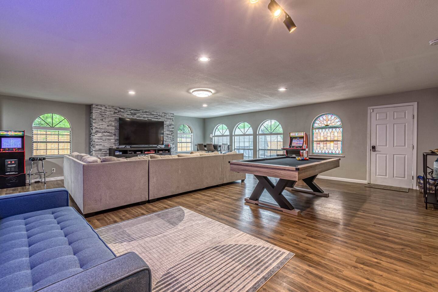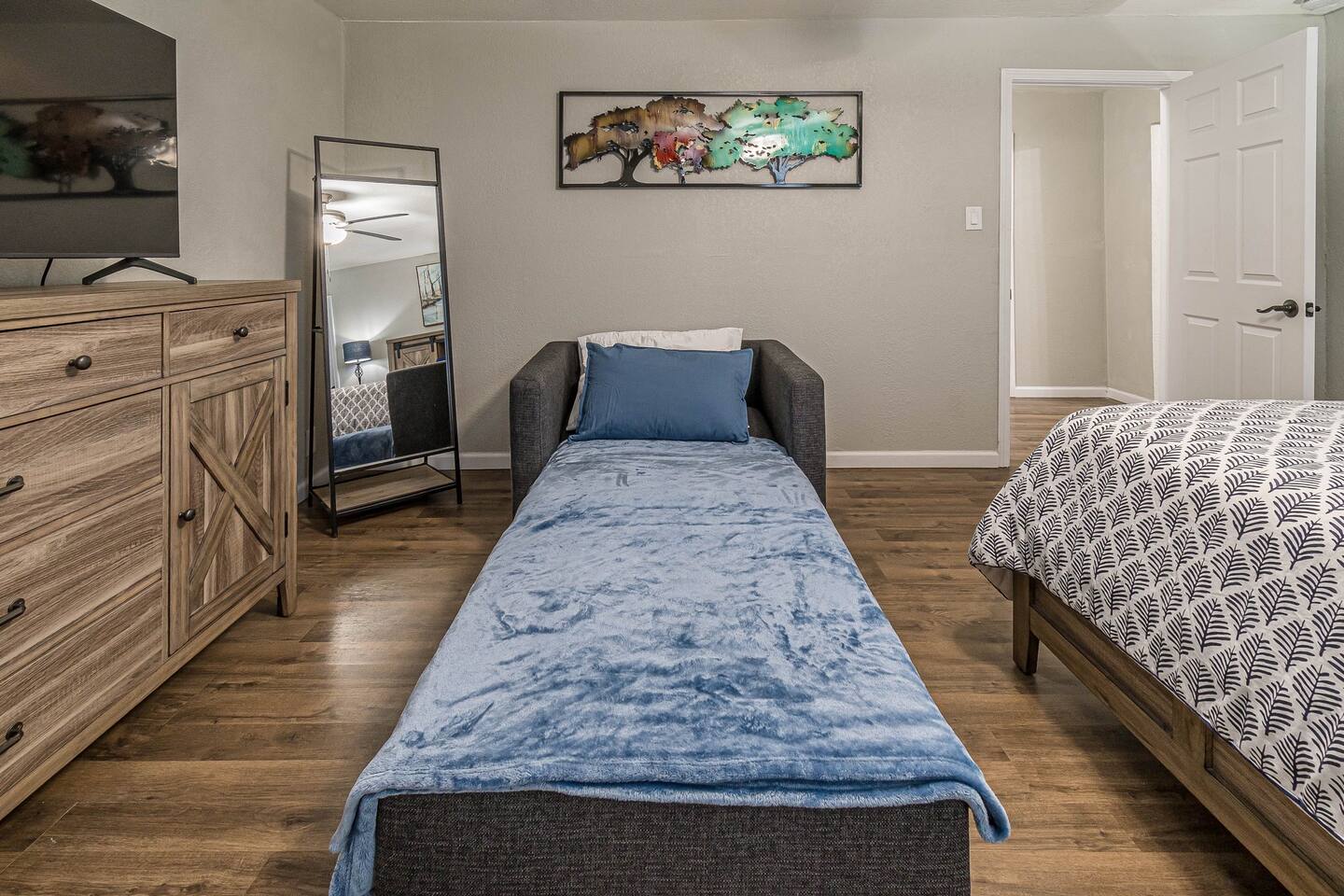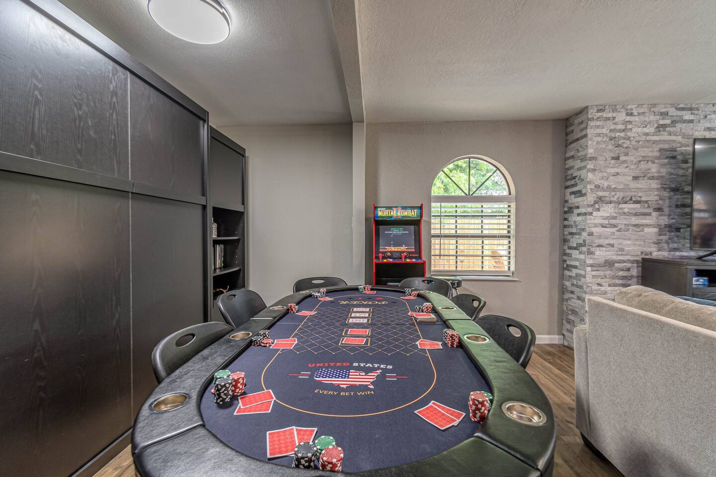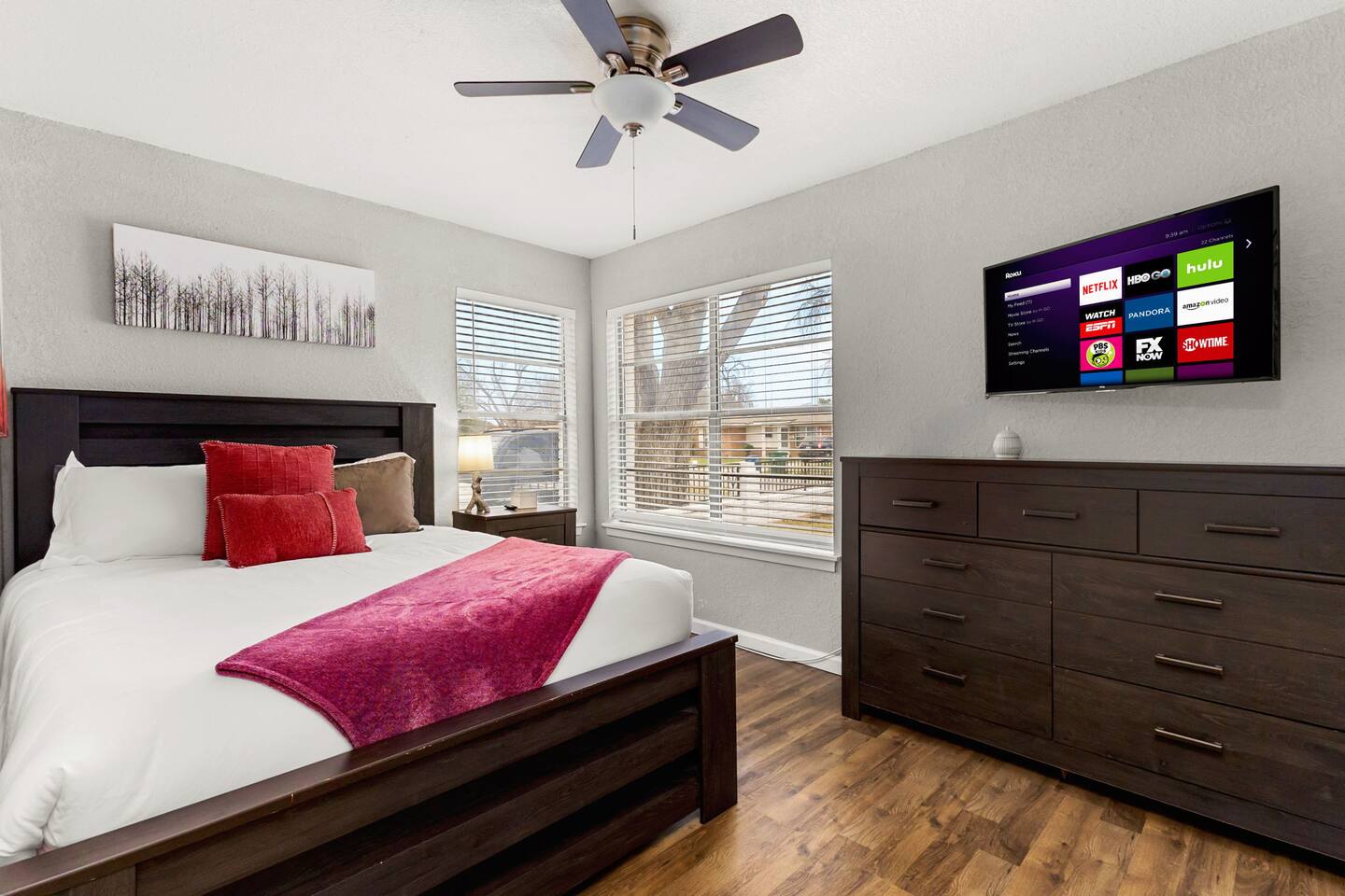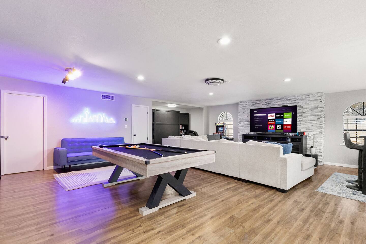 Toda la propiedad, tanto por dentro como por fuera, ha sido completamente remodelada. Ubicada en el centro de la ciudad, en el histórico vecindario de Shearview Hills. La casa cuenta con 4 habitaciones y 2 baños. La recámara principal tiene una chimenea decorativa. Esta casa tiene una sala de estar MUY grande con múltiples ventajas y comodidades. Hay un total de 3 camas queen, 1 cama matrimonial y 2 sofás cama cómodos, además de un sofá seccional en forma de L muy confortable. Disponemos de colchones inflables extra si se necesitan más camas. Es el lugar perfecto para grupos que buscan lujo y comodidad. Crea los mejores recuerdos aquí con tu familia y amigos en nuestra espaciosa casa. (RESUMEN DE CARACTERÍSTICAS) -Mesa de billar -Mesa de póker para 10 personas con fichas/cartas -Smart TVs en cada habitación (Netflix, Prime, Paramount+ con Showtime, Hulu, Disney+) -2 máquinas arcade retro (hasta 6 jugadores pueden jugar al mismo tiempo) -Cocina y asador totalmente equipados -Variedad de juegos de mesa -Múltiples lugares muy estéticos para fotos ¡Hay mucho que decir sobre esta casa! Administramos muchas casas en San Antonio y ¡esta es sin duda una de nuestras favoritas! Si yo tuviera que elegir una casa en San Antonio, esta sería mi elección. El propietario no escatimó en nada al crear este Airbnb y, en mi opinión, ¡la ubicación es la mejor de San Antonio! Esta es una casa completamente remodelada, y cada detalle fue cuidadosamente pensado por el propietario, quien la diseñó específicamente para alquileres a corto plazo, con cada detalle en mente y muy enfocada en familias. ¡Incluso hay un patio delantero cercado! La casa cuenta con 4 habitaciones con colchones de gel memory foam muy cómodos. Cocina: La cocina cuenta con electrodomésticos de alta gama, completamente equipada con utensilios de cocina premium, olla instantánea, estación de café y estufa de gas. También tiene una gran mesa de comedor con área de bar completa, el lugar perfecto para pasar la tarde con amigos y familia. Como todos saben, el grupo siempre se reúne en la cocina. Entretenimiento - En la casa principal encontrarás: Smart TVs por todas partes. Hay televisores HD con soportes giratorios fáciles de mover en cada habitación. La sala cuenta con una TV HD 4K de 75 pulgadas con Netflix, Amazon Prime y Disney Plus en cada TV. ¡El sistema de sonido es increíble! También ofrecemos un Nintendo Switch con controles. Además, tenemos varias máquinas arcade retro. ¡Puedes mostrarles a tus hijos a qué jugabas antes! El patio trasero - ¡Este es nuestro lugar favorito! Ofrecemos un asador totalmente equipado y una increíble fogata de gas con muchos asientos para esas noches frescas haciendo S'mores. ¡Ubicación, ubicación, ubicación! Esta casa está ubicada prácticamente en el centro de San Antonio. El aeropuerto está a solo cuatro minutos y el centro a literalmente diez minutos. Muy fácil acceso a los principales corredores viales: US Highway 281 y la Interestatal Loop 410. Riverwalk - 7 millas / 10 minutos Álamo - 7 millas / 10 minutos The Historic Pearl - 5.5 millas / 7 minutos - ¡Muchos restaurantes, bares y tiendas excelentes! North Star Mall - 0.8 millas / 3 minutos Zoológico de San Antonio - 4.4 millas / 8 minutos Centro de Convenciones - 7.7 millas / 12 minutos Alamodome - 7.8 millas / 10 minutos Hay demasiadas opciones de restaurantes para enumerar, pero literalmente tienes muchísimas opciones a minutos de esta ubicación. También hay un Walmart y una tienda HEB a solo minutos. Esta es una "casa sin fiestas" y aplicamos esta política estrictamente. Queremos que la pases genial, pero si buscas una casa para hacer fiestas e invitar a personas no autorizadas, esta casa no es para ti. Los huéspedes tendrán acceso a toda la casa. Otras cosas a tener en cuenta: Los huéspedes pueden usar la entrada para estacionar fácilmente 2-3 autos. Y pueden estacionar 2 autos adicionales en la calle al frente. Reglas de la casa: El número exacto de huéspedes debe coincidir con el registrado en la reservación No fiestas ni eventos No fumar Horario de silencio de 11 pm a 8 am No se permiten personas externas sin aprobación Por favor, usa los botes de basura para desechar tampones, papel higiénico y toallas de papel en lugar de arrojarlos al inodoro. Esta es una "casa sin fiestas" y aplicamos esta política estrictamente. Queremos que la pases genial, pero si buscas una casa para hacer fiestas e invitar a personas no autorizadas, esta casa no es para ti. Aviso: Si violas las reglas de la casa, se te pedirá que abandones la unidad y no se emitirá reembolso. *** ✅ Esta propiedad cumple con las normas locales y utiliza una plataforma simple y segura llamada Happy Guest para agilizar el proceso de check-in. No necesitas descargar una app ni crear una cuenta; es solo un sitio web rápido y seguro que te da todo lo que necesitas para una llegada sin problemas. También tendrás acceso a tu portal personalizado de huésped, donde puedes encontrar toda la información sobre la casa y algunos de nuestros lugares favoritos locales. El portal también ofrece mejoras opcionales para personalizar tu estancia: • Huésped extra – $50 • Late Checkout – $50 • Abastecer el refrigerador – $100 <b>★☆ ¡Reserva hoy y déjanos cuidarte en San Antonio! ☆★</b>