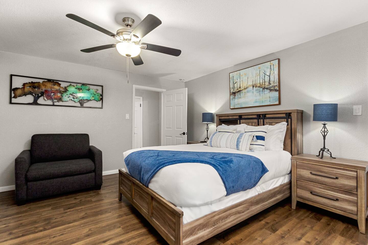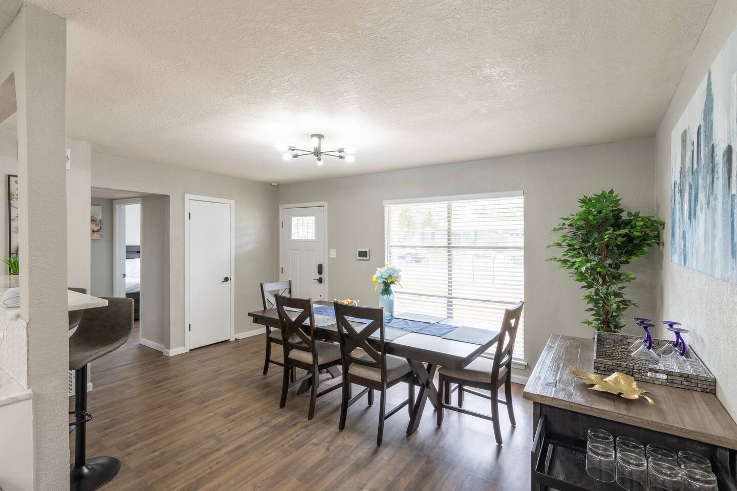 ¡Esta casa de 4 habitaciones y 2 baños, recién renovada y amueblada, está completamente equipada para todas tus necesidades! Ubicada a solo 3 minutos del Aeropuerto de San Antonio y a 9 minutos del centro. ¡Justo al lado del centro comercial Northstar y restaurantes! Cuenta con una sala de estar muy grande y espaciosa, ideal para grupos grandes. Cocina totalmente equipada y cuarto de lavado con lavadora y secadora. Jacuzzi y muchas comodidades. Mesa de comedor familiar de tamaño completo con área de bar incluida. Gran patio trasero con terraza, asador y fogata de gas. STR-22-13500556