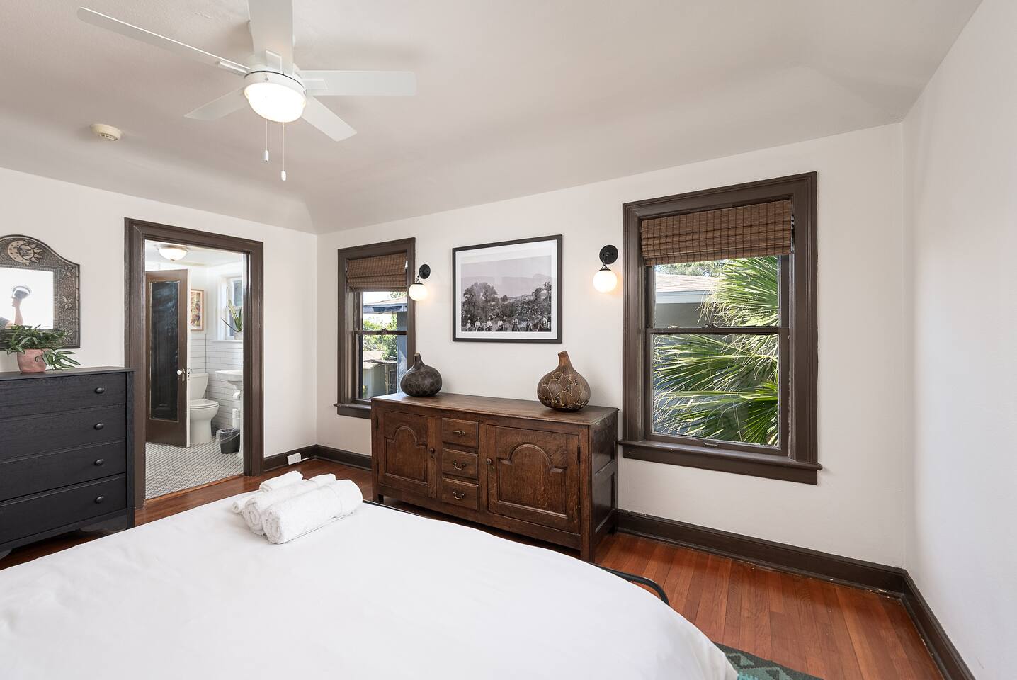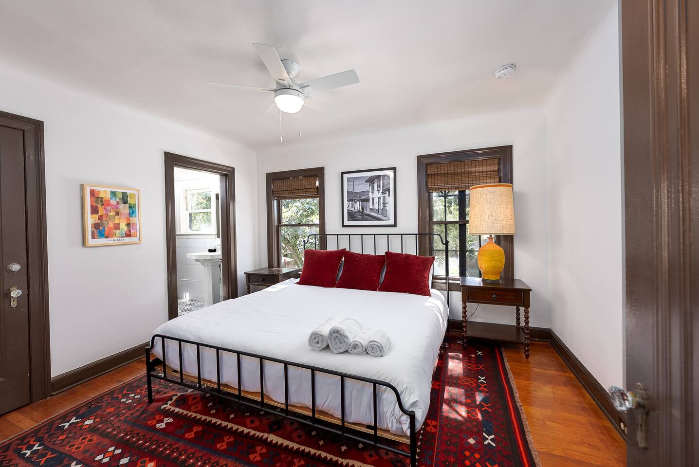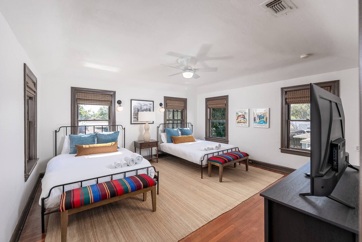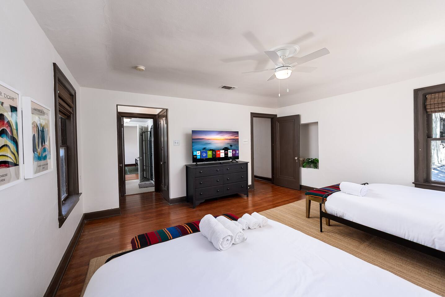 ☀ Sleeps up to 10 guests in comfort ☀ 4 bedrooms • 3.5 bathrooms (including casita pool bath) ☀ Designed by Atlee B. Ayres – 1929 Spanish Colonial architecture ☀ Pool & attached hot tub with large flagstone sundeck ☀ Open chef’s kitchen with gas range & natural light ☀ Google Fiber high-speed WiFi + workspace ☀ Family-friendly amenities including Pack ’n Play ☀ 5 minutes to Downtown, Pearl District & River Walk ☆☆ BEDROOMS ☆☆ All four bedrooms are on the second floor, each crafted for comfort and calm. • Bedroom 1: King bed, Jack & Jill ensuite bath, cozy lighting. • Bedroom 2: King bed, shared Jack & Jill ensuite bath, soothing tones. • Bedroom 3: Two Queen beds, access to shared bath; ideal for families. • Bedroom 4: Two Queen beds, connected by Jack & Jill bath, filled with natural light. Soft linens, room-darkening shades, and extra pillows promise restful nights. ☆☆ BATHROOMS ☆☆ Three and a half beautifully appointed bathrooms ensure every guest has space and comfort. Two full Jack & Jill baths upstairs offer convenience and privacy, while the casita’s full bath provides easy poolside access. Each bathroom is fully stocked with shampoo, conditioner, body wash, plush towels, and all the essentials for a spa-like experience. ☆☆ KITCHEN & RELAXING AREAS ☆☆ The open-concept kitchen invites conversation and connection, featuring a gas stove island, deep sink, and plenty of natural light. Share breakfast at the cozy table or gather in the dining room for family meals. The living area blends modern comfort with Spanish Colonial character—original details, warm textures, and contemporary furnishings create the perfect balance of history and ease. ☆☆ OUTSIDE SPACE ☆☆ Step outside to your private oasis—one of San Antonio’s largest residential pools, complete with heated spa and sun loungers. Enjoy the newly renovated flagstone deck for lounging, dining, or stargazing. The casita doubles as a convenient pool house with a full bath and storage for pool supplies. Driveway parking for 2–3 vehicles plus free street parking available. ★☆ Book Today & Let Us Take Care Of You ☆★ Whether you’re gathering loved ones, celebrating milestones, or simply escaping for peace and sunshine, this Spanish Colonial retreat offers comfort, history, and luxury in perfect harmony. Book your stay today and experience San Antonio like never before. ✅ This property follows local compliance standards and uses a simple, secure platform called Happy Guest to streamline the check-in process. You don’t need to download an app or create an account, it’s just a quick and secure website that gives you everything you need for a smooth arrival. You’ll also get access to your personalized guest portal, where you can find all the info about the home and some of our favorite local spots. The portal also offers optional upgrades to help you customize your stay, for example: • Extra Guest – $50 • Late Checkout – $50 • Stock the Fridge – $100