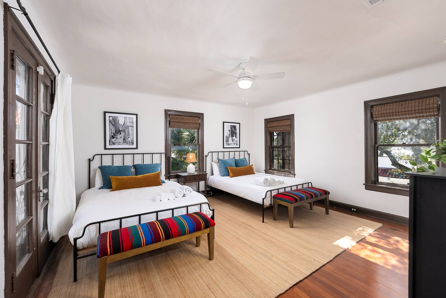 Step into timeless elegance at this 1929 Spanish Colonial by renowned architect Atlee B. Ayres. Enjoy one of San Antonio’s largest private pools with spa, spacious sundeck, and charming casita bath. • Sleeps 12 • 4 bedrooms • 3.5 baths • Google Fiber WiFi & family amenities • 5 mins to Downtown, Pearl, & River Walk Historic charm meets modern luxury in Monticello Park’s Deco District; your private retreat in the heart of the city.