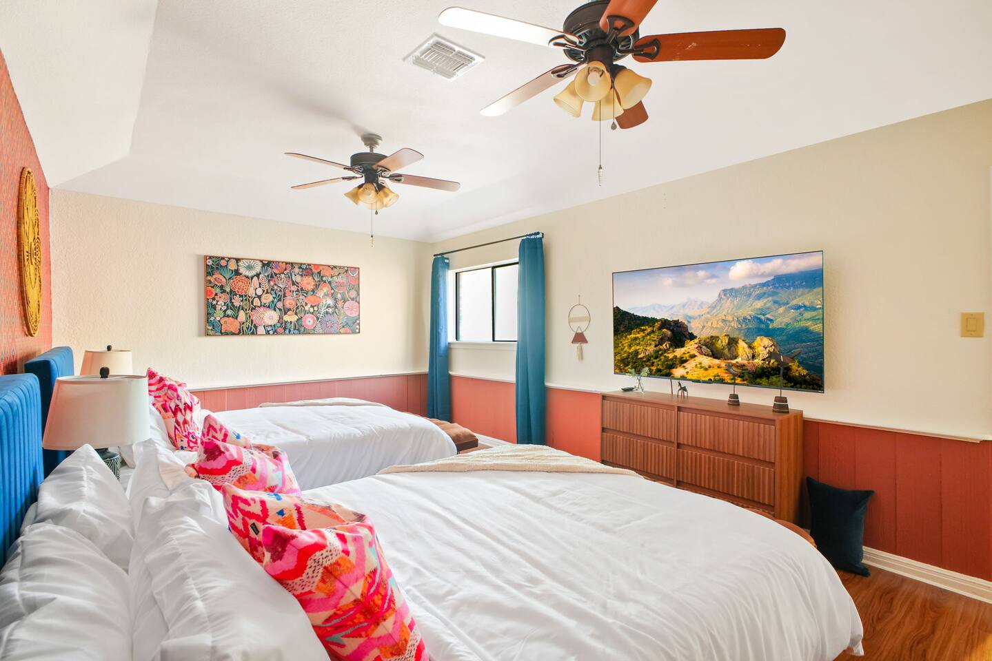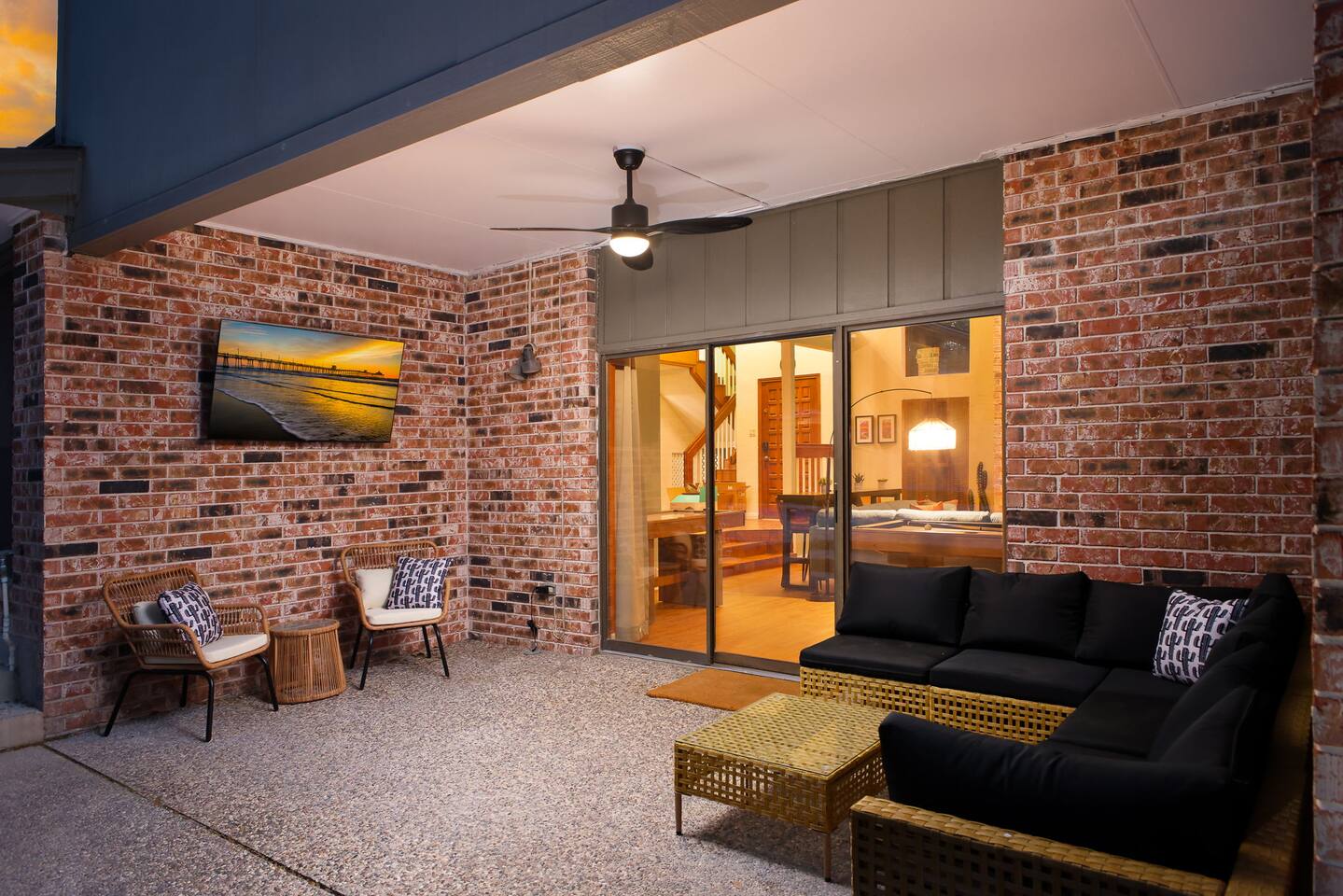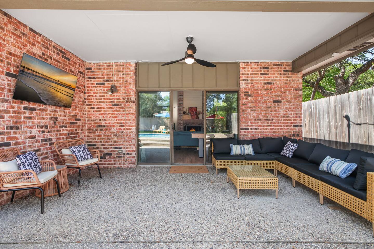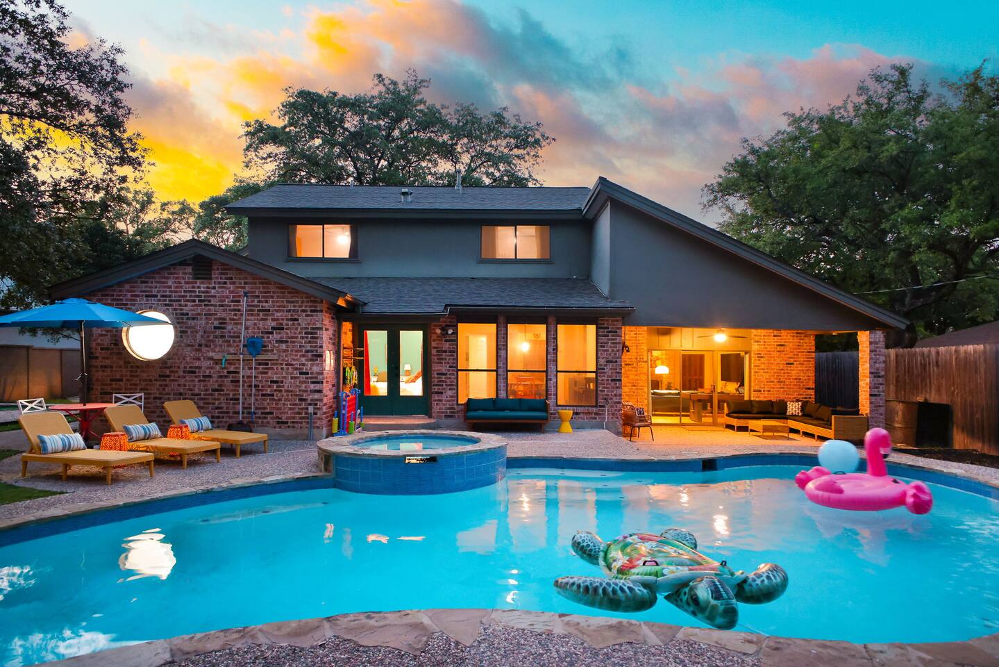 Top 3 Guest Compliments 1. "The kids never wanted to leave!" – Jose, May 2025 2. "Peaceful neighborhood, but close to everything." – Elizabeth, Jul 2025 3. "Hosts were quick, friendly, and always there when needed." – Nicole, Jun 2025 Your Private Family Resort in San Antonio Step into a colorful escape where every corner is designed for fun, laughter, and connection. With space for 14 guests, this vibrant retreat blends the best of a luxury resort and a playful family home — no wristbands required. Why You’ll Love It Here: - Heated pool + hot tub for year-round splashing and soaking - Backyard mini-golf, bowling, and a fire pit under twinkling lights - Kids’ game room with custom bunk beds and a yellow slide - Indoor arcade, pool table, and air hockey for nonstop competition - 10–25 minutes to Six Flags, the Alamo, Riverwalk, Zoo, and Lackland AFB - Summer splash days or cozy winter hot tub nights — fun awaits year-round Perfect for Air Force BMT Graduation Families - Just 25 minutes to Lackland AFB, so this home is ideal for celebrating your Airman’s achievement - Room for grandparents, kids, friends, and everyone in between - Plenty to do between ceremonies — pool time, games, and outdoor gatherings Bedrooms - King Suite – Plush king bed, ensuite bath with walk-in shower and double vanity - Double Queen Room – Two queen beds, colorful decor, TV, and storage - Additional Queen Rooms – Cozy beds, TVs, cheerful accents - Kids’ Bunk Room – Twin bunks with slide, foosball, shuffleboard, and board games Kitchen & Dining - Fully stocked kitchen with modern appliances - Coffee bar with Nespresso, Keurig, and French press - Indoor dining table for 10+ - Outdoor covered dining with colorful umbrellas Entertainment Everywhere - Backyard mini-golf and bowling alley - Pool table, air hockey, and arcade games - Board games, books, and a kids’ nook under the stairs - Fire pit for evening s’mores and stories Outdoors - Heated pool and hot tub for every season - Shaded lounge area with outdoor TV and ceiling fans - Fully fenced backyard for peace of mind Why Families Love It From sunrise coffee on the patio to nighttime hot tub chats, this home makes every moment easy to enjoy. Families often skip going out because "there’s too much to do right here." Even in cooler months, the hot tub, fire pit, and game rooms make it a perfect escape. ✅ Local compliance standards followed ✅ Easy self check-in with smart lock ✅ Personalized guest portal with local tips and upgrade options
