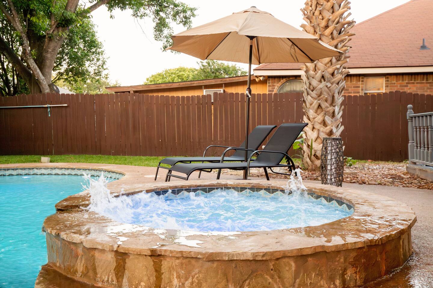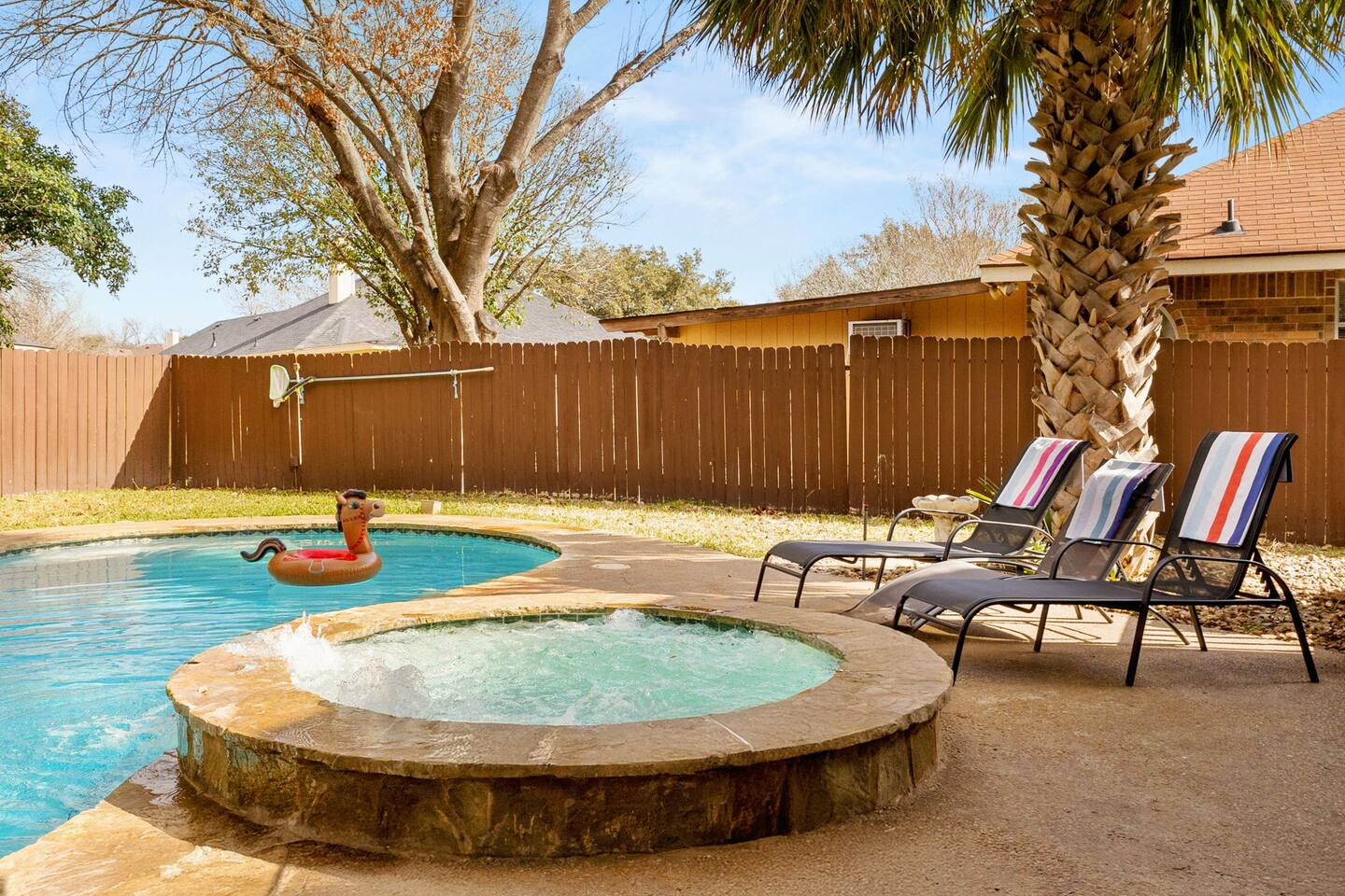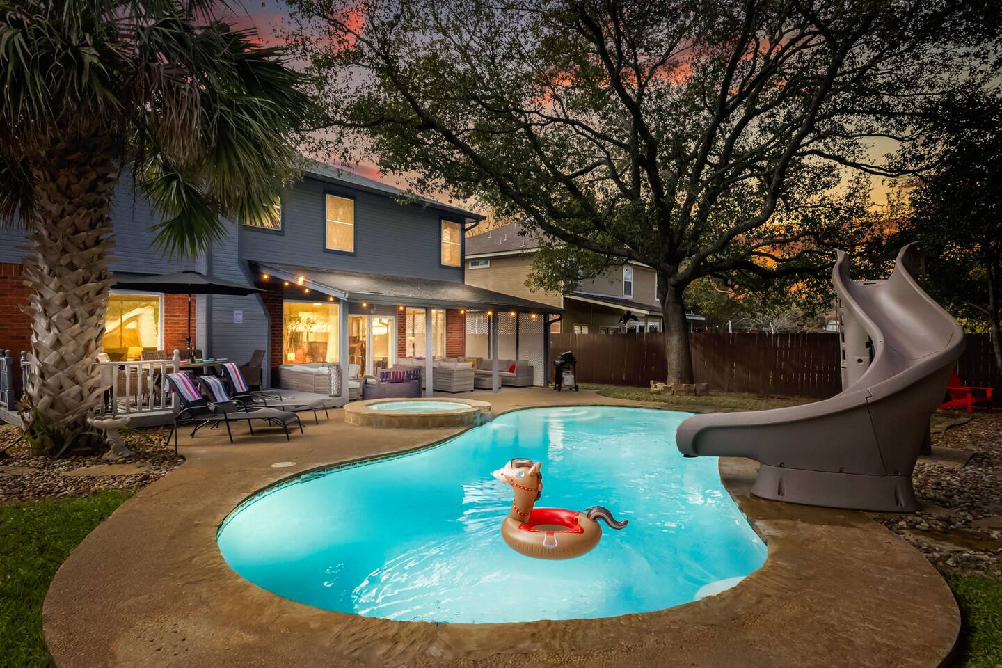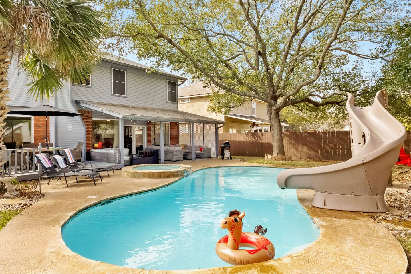 * Luxurious 4-bedroom home in gated community, sleeps 12 * Heated pool with slide, in-ground hot tub, an outdoor oasis *Brand-new Game room with Fussball, Air Hockey, Basketball * Spacious indoor living with 75" Smart TV, XBOX S and family board games * Fully LOADED kitchen for all your culinary needs * Family-friendly amenities: high chairs, pack-and-plays * Pet Friendly...bring your furry friends! * Sleep like a baby on mattresses praised by our guests! * Close to top San Antonio attractions