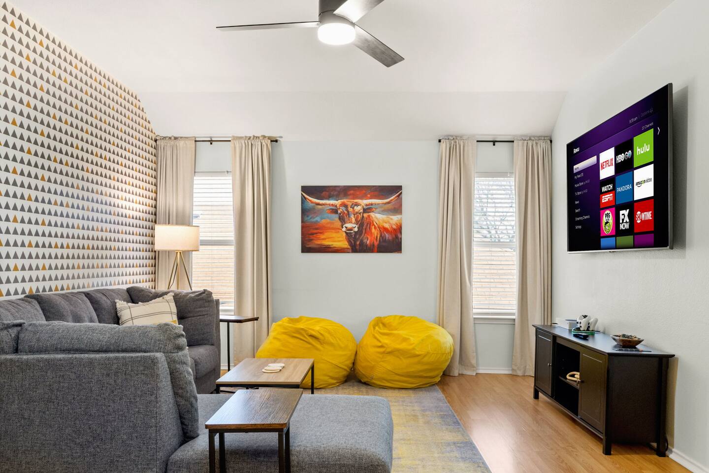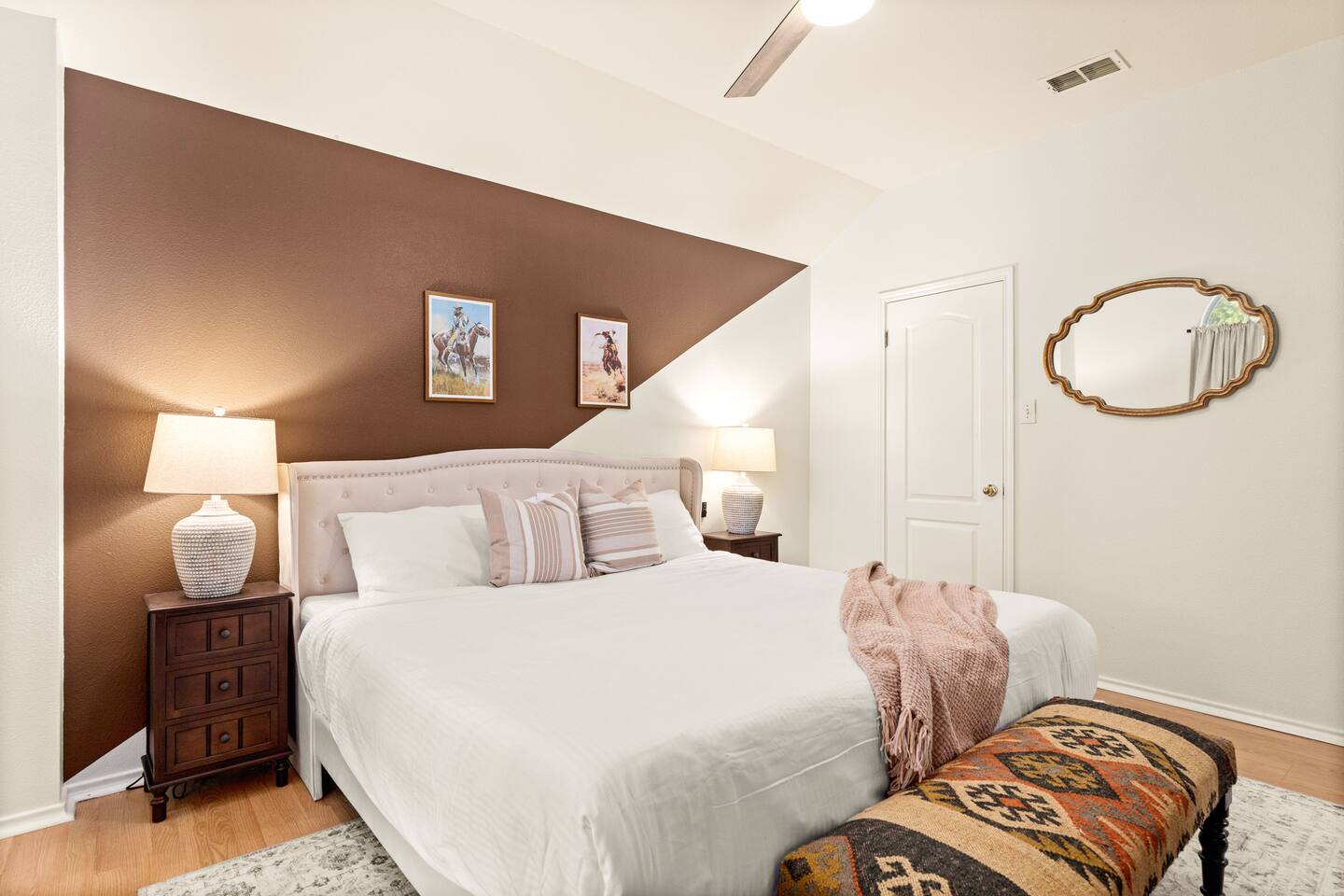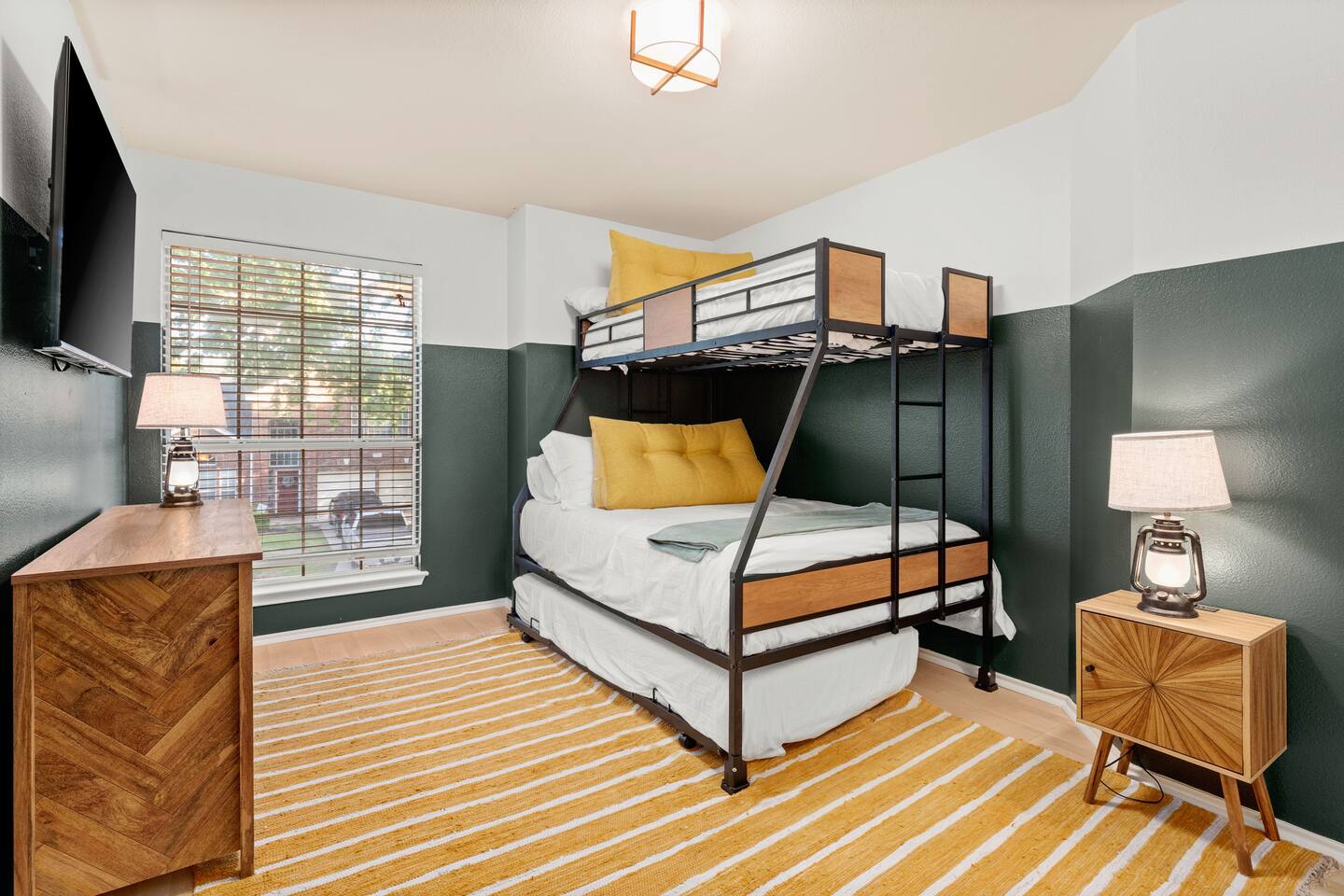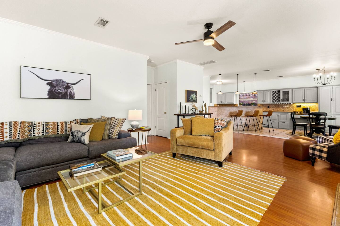 Indoor Living Spaces Gather up the family and make yourself cozy in our expansive living room, complete with a wrap-around sectional sofa lined with plush chaise cushioning. Stream your favorite shows or excite the gamer in the group with the Xbox 5, all on a 75” Smart TV! For some friendly competition, there's an abundance of board games provided; Not into streaming? Challenge each other with classic board games or let the kids take over upstairs for their very own movie night. Cooking & Dining Are you a master of the kitchen? This fully-equipped kitchen has everything for your cooking adventures. Generously stocked with a spice rack, baking sheets, pots & pans galore – plus necessary tools like blenders, crockpots and a toaster – there won't be an ingredient or technique left unperfected in any dish. Afterwards, savor special meals in our spacious dining room seating up 8 lucky guests while overlooking your backyard oasis! Additional seating for 7 between the kitchen table and island. Or dine alfresco and soak in your outdoor paradise, complete with dining space and lounge area. Sleeping Accommodations and Bathrooms The home sleeps up to 12 people, making it an ideal space for family reunions, bachelor or bachelorette parties, wedding parties or traveling with friends! All of the bedrooms are outfitted with incredible mattresses that we regularly get compliments on. They're so good we bought one for our own house! The perfect abode for family and friends, the home is equipped with 4 spacious bedrooms perfectly situated on one level. Resting easy won't be a problem as 3 of these rooms offer luxurious king-sized beds while the 4th reveals its laid back vibes through an inviting twin over full bunk bed frameset that also includes a cozy trundle underneath. All of the bedrooms are equipped with 55in Smart TV's so you can wind down with a movie or your favorite show. Outdoor Living Spaces Get ready for luxury in your own backyard. Relax under the covered patio with a grill sizzling, dinner on the outdoor dining table, and cozy lounge chairs perfect for an evening spent star-gazing. And that's before you dive into the heated pool featuring its very own thrilling slide! An in-ground hot tub awaits to melt away any cares or worries of every day life - all just steps from your back door! <b>**ABOUT OUR HEATED POOL**</b> Our pool and spa can be heated year round, however depending on the outside temperatures during your stay, it could be more difficult to heat during January and February's coldest temperatures. Thank you for understanding. While the pool won’t reach hot-tub temperatures, the pool is consistently maintained at 86º degrees November to April/May. Our pool team comes to take care of the home on Thursday or Friday. On the coldest days of the year, our pool may not reach the set temperature due to the extreme cold. Most heat pumps do not function as well when outside temperature is less than 55 degrees. We’re happy to provide this added comfort at no extra charge, so you can focus on enjoying your stay. Please note that pool temperatures will vary slightly based on weather conditions. *** ✅ This property follows local compliance standards and uses a simple, secure platform called Happy Guest to streamline the check-in process. You don’t need to download an app or create an account — it’s just a quick and secure website that gives you everything you need for a smooth arrival. You’ll also get access to your personalized guest portal, where you can find all the info about the home and some of our favorite local spots. The portal also offers optional upgrades to help you customize your stay: • Extra Guest – $50 • Late Checkout – $50 • Stock the Fridge – $100 <b>★☆ Book Today & Let Us Take Care Of You In San Antonio! ☆★</b>